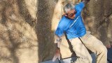 受講者のみなさんも結構な本数登っていただいたのでお疲れモードかなぁ。ということでトップロープビレイ体験に切り替えて岩教室を進めます。ルート通してのビレイ体験は次回に行いますが、フォールしたらどんな感じなるのかスタッフがロープにぶら下がった形で体験していただきました。クライマーとの体重差やフォール荷重を事前に感覚として体験してもらい「確実に止める」+「ビレイヤー自身の安全」を説明させていただきました。みなさん意外といって失礼かな?上手に操作されていたように感じます。