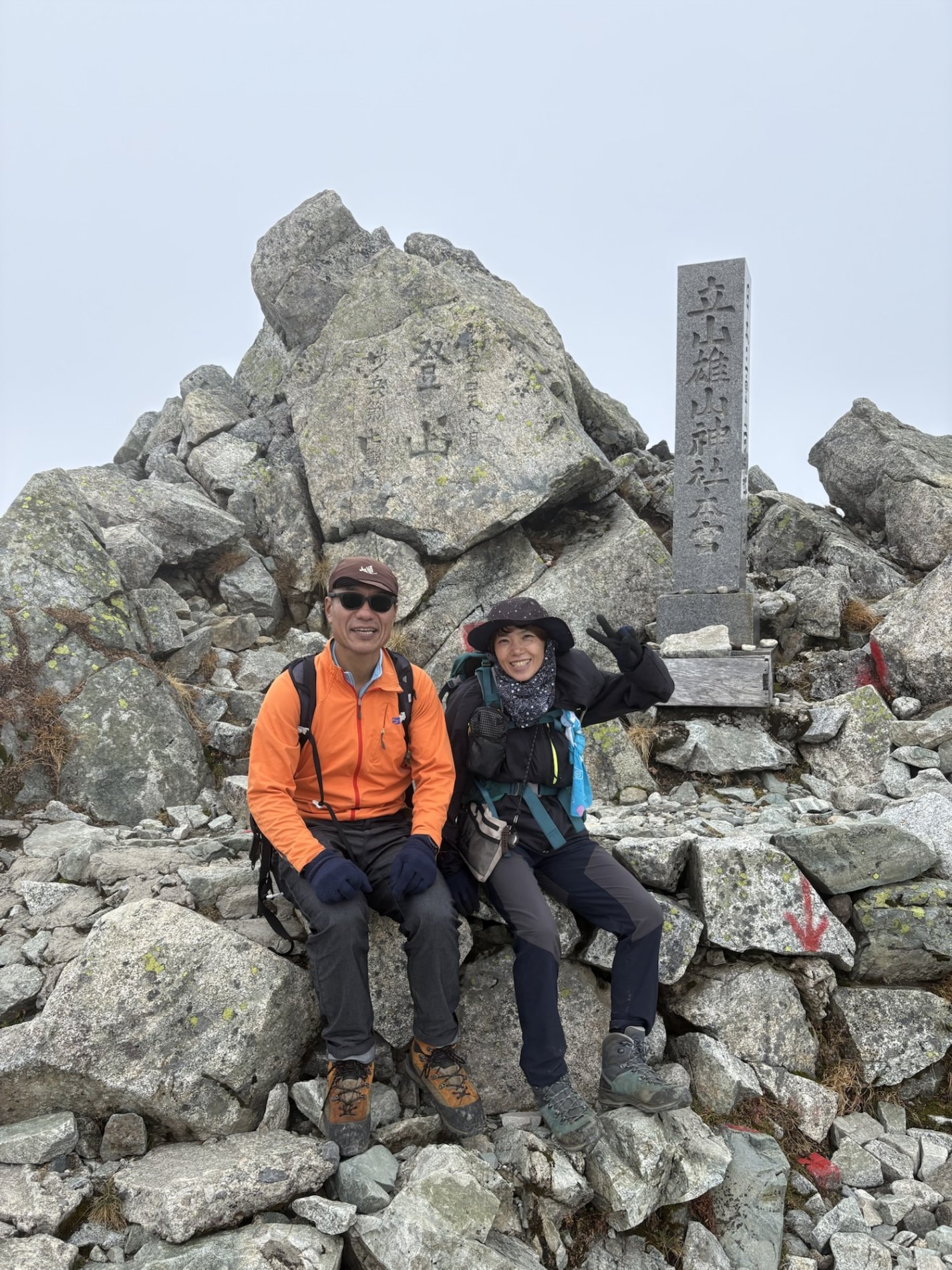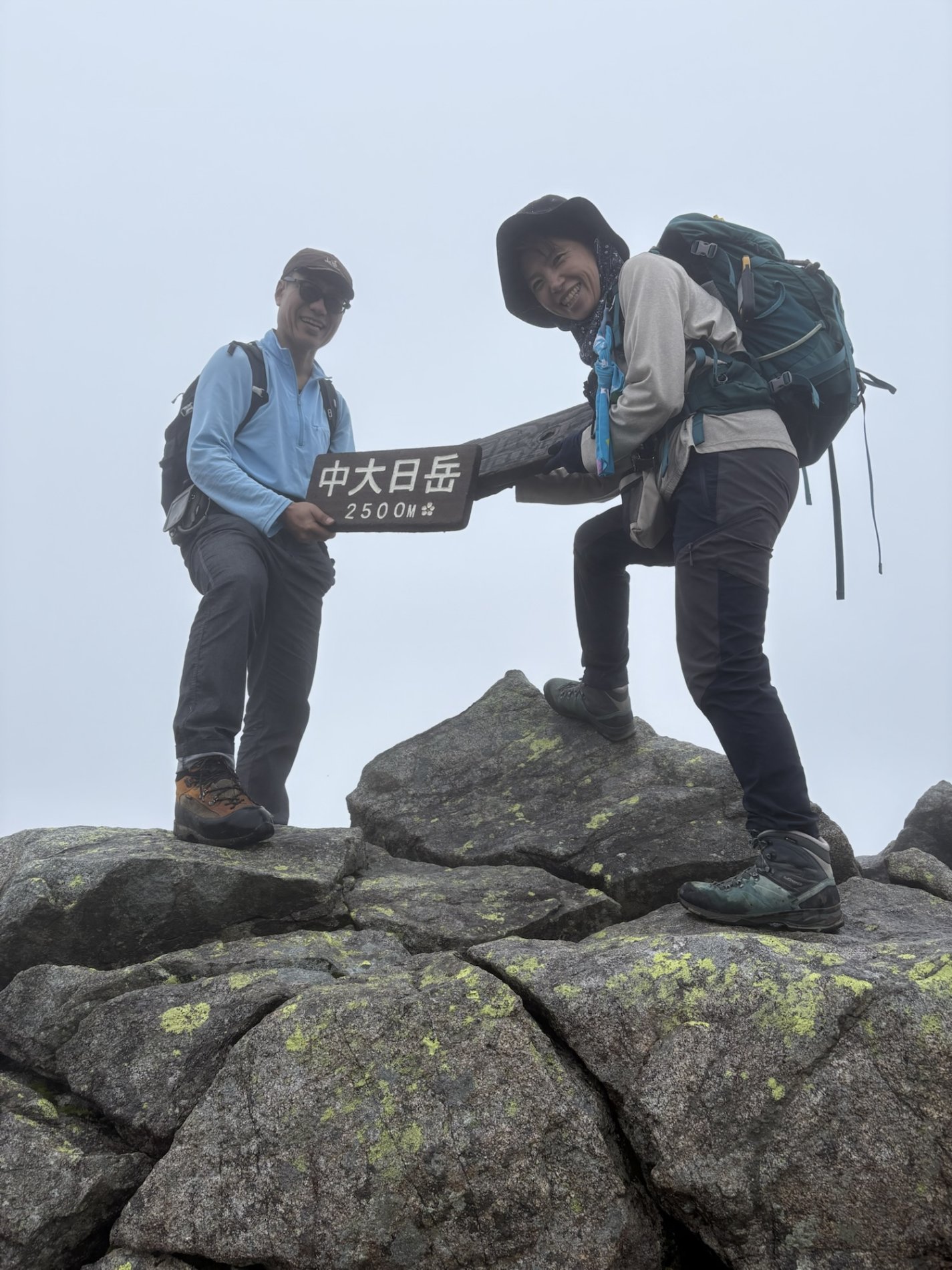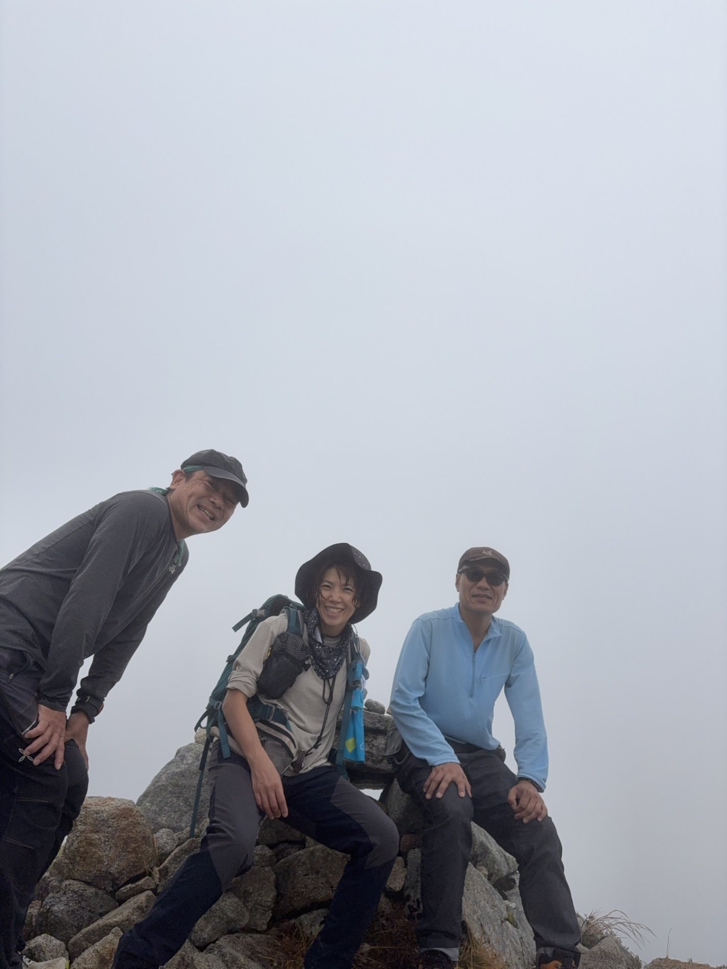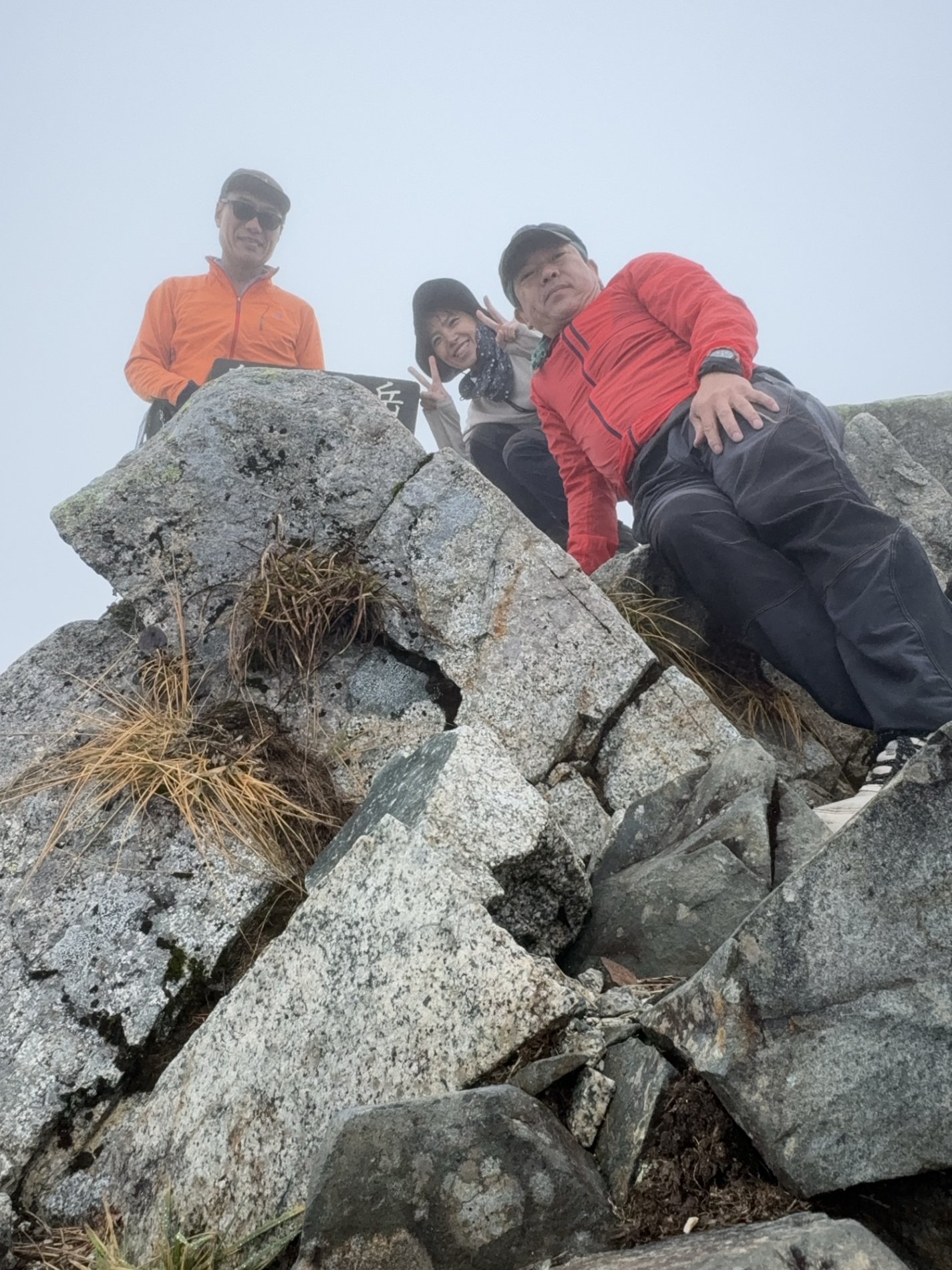 大日岳は、濃霧で真っ白でした。今回の山行は、ずーっと真っ白でした。