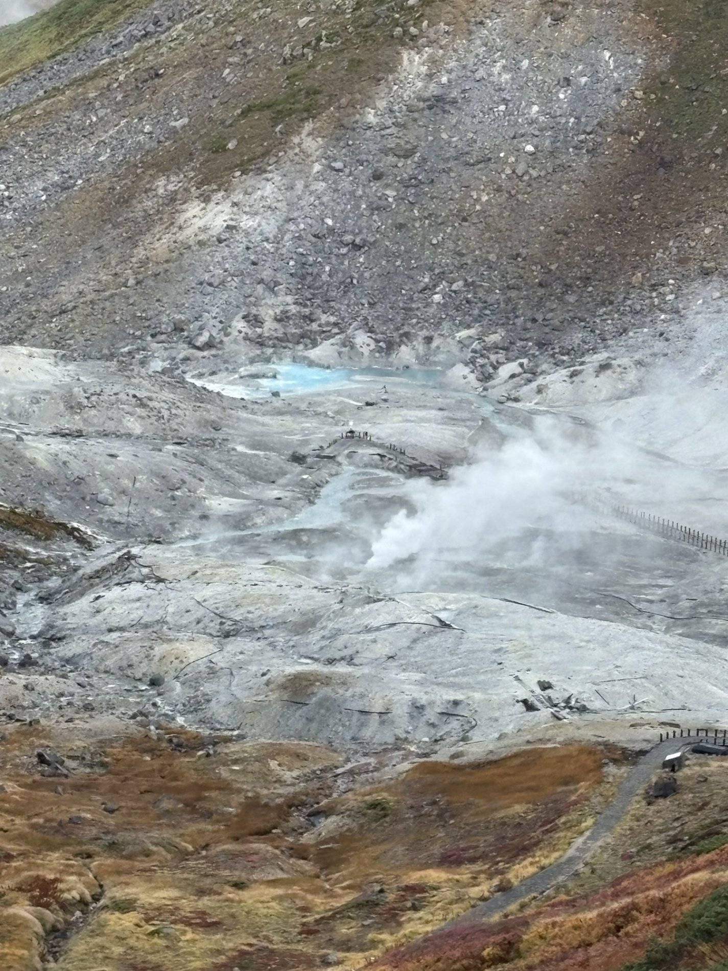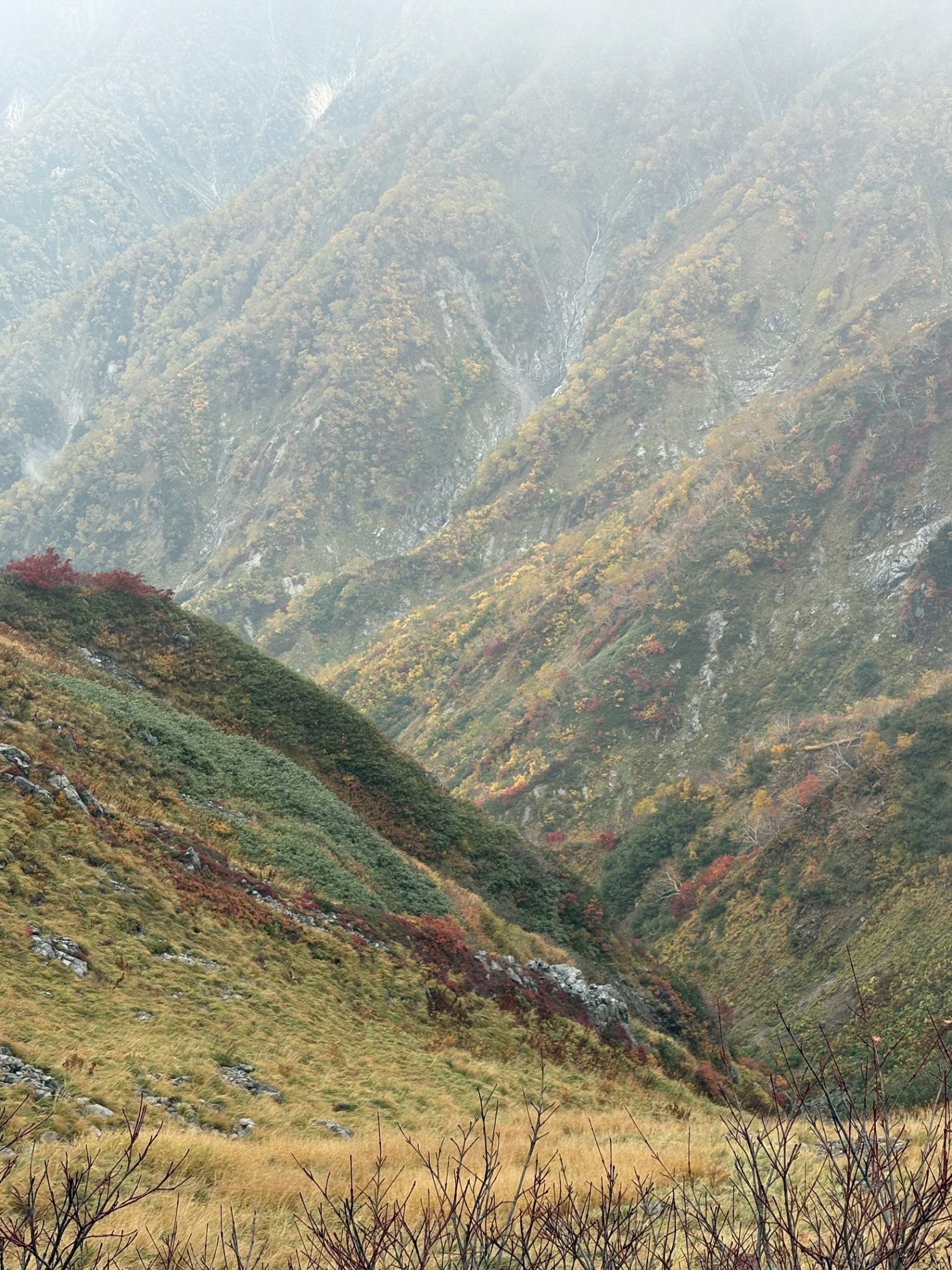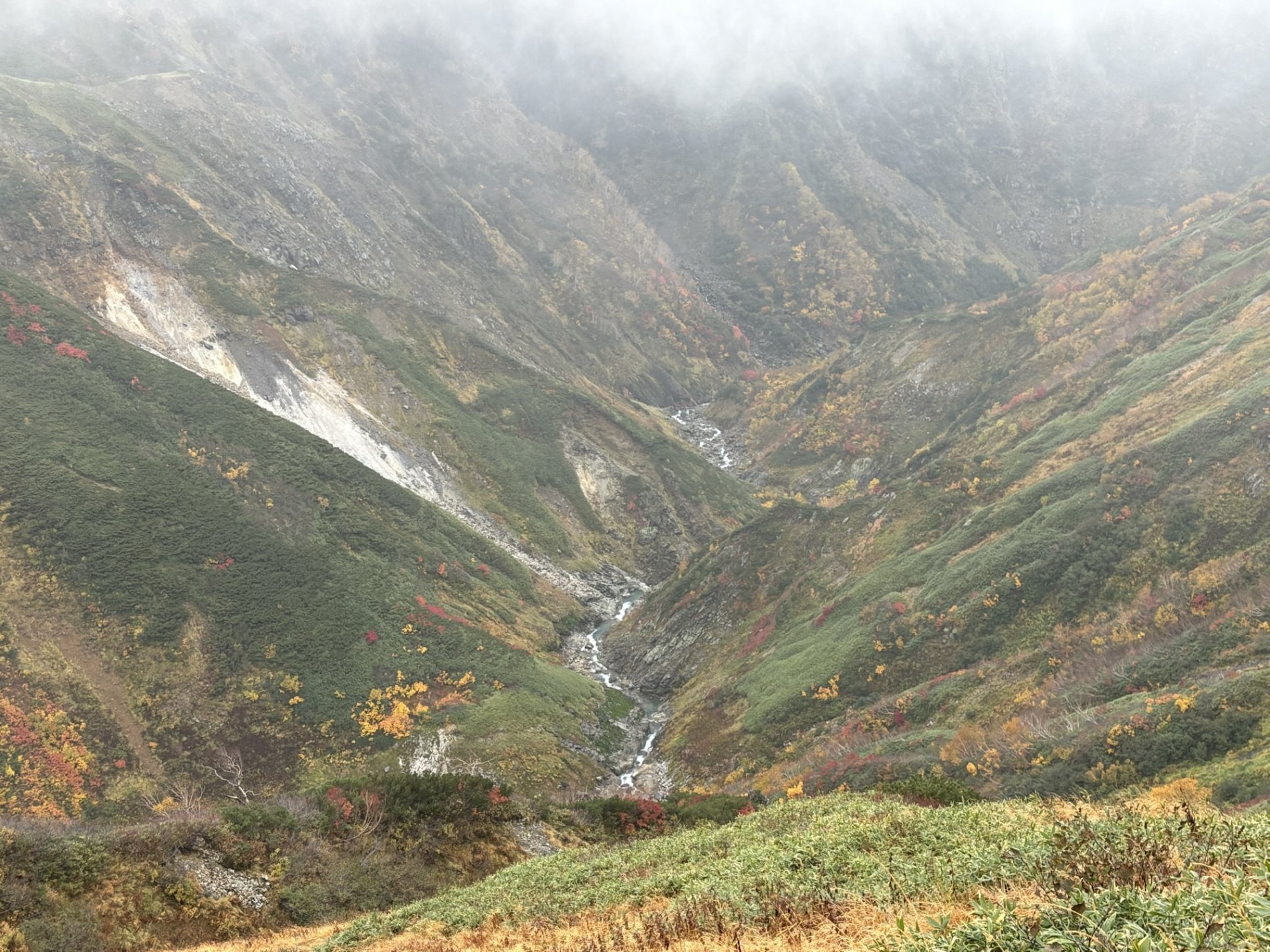 時折り、ガスが取れた瞬間、ふもとから上部まで見事な綺麗な紅葉が見れました。今年はあたり年、観たいです。