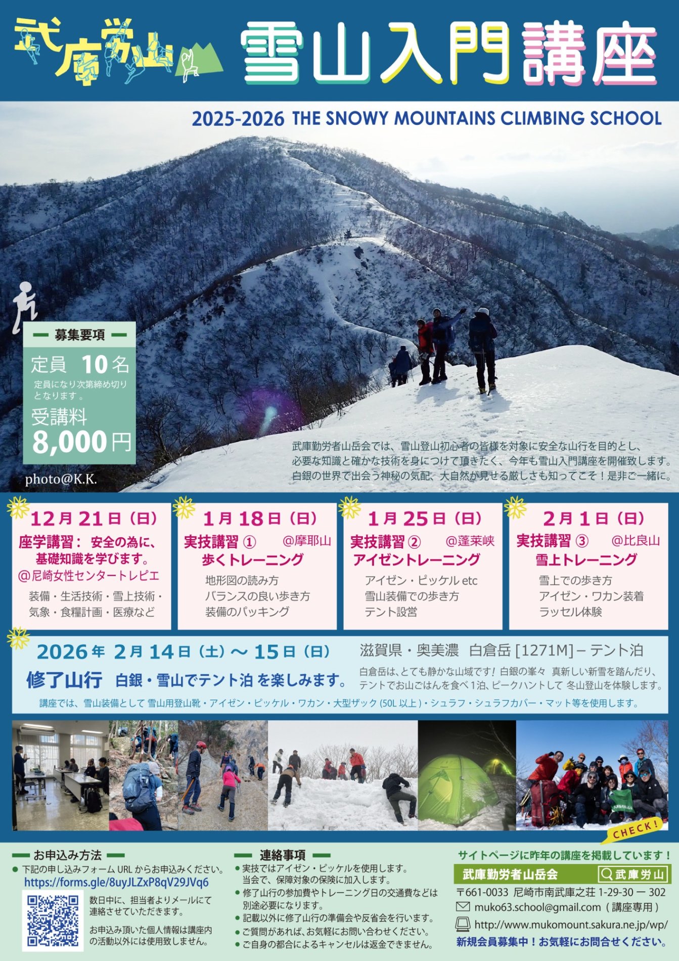 ・加入する山岳保険は「ワンタイムやまの保険」となります(受講料に含む)