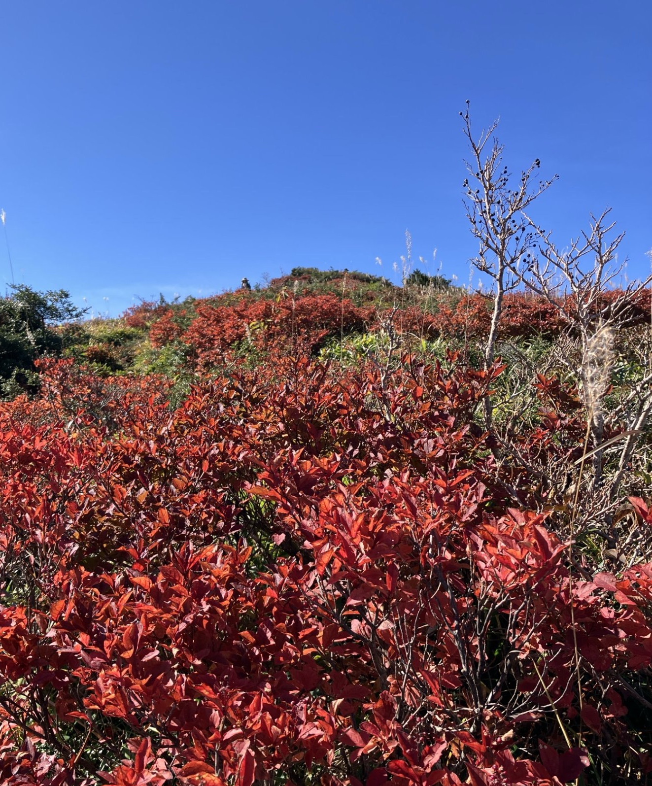 比婆山から池の段に登ります。ここはホツツジが赤く染まって見事!