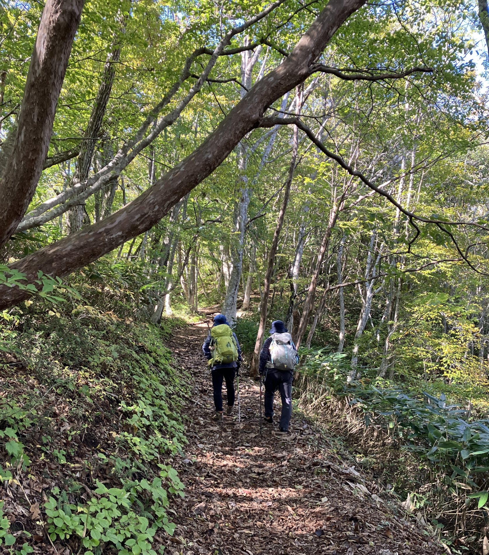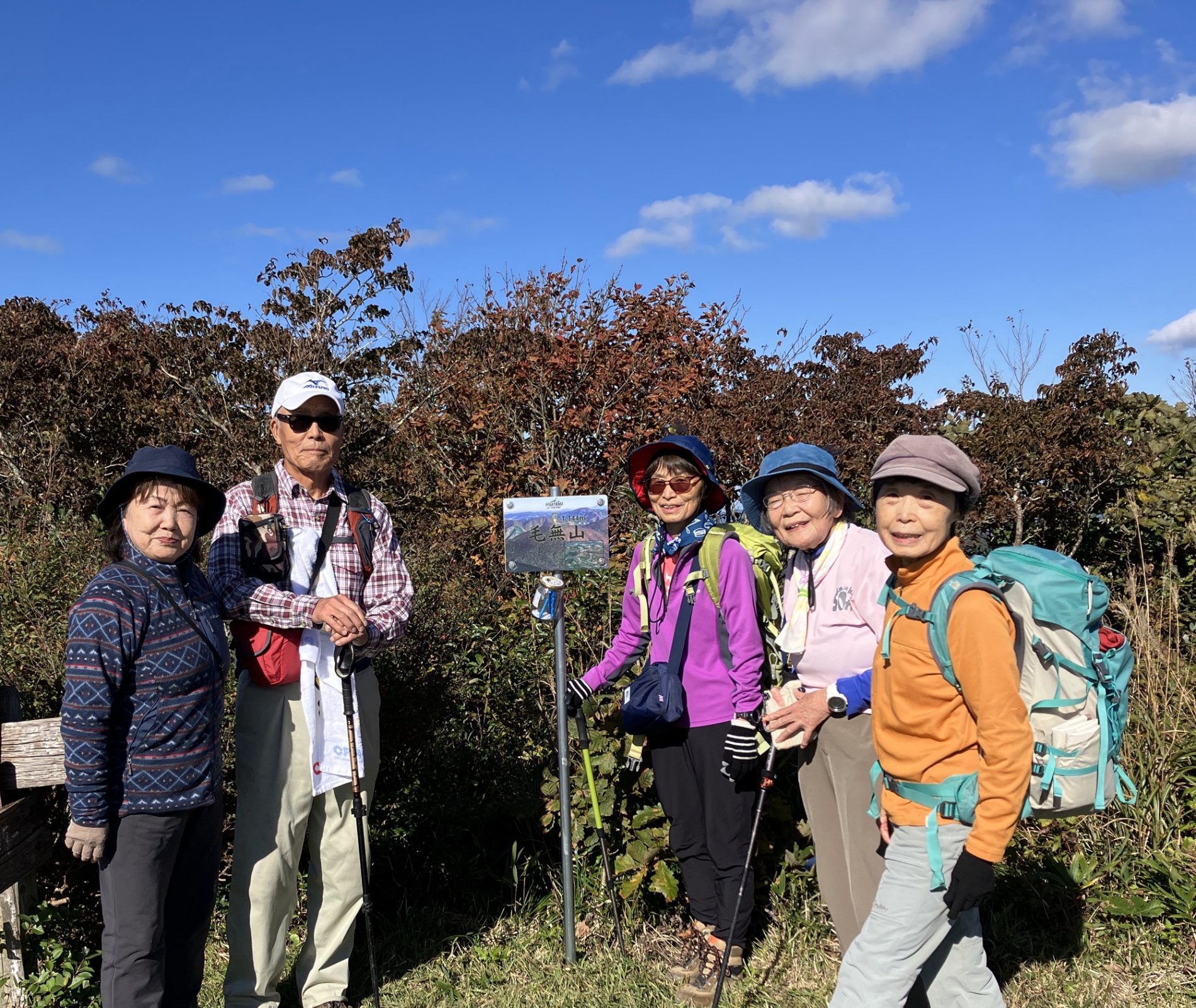 毛無山は緩くて歩きやすい、私たちにはピッタリの山、でも木々はまだ緑色、時期が早かったか?