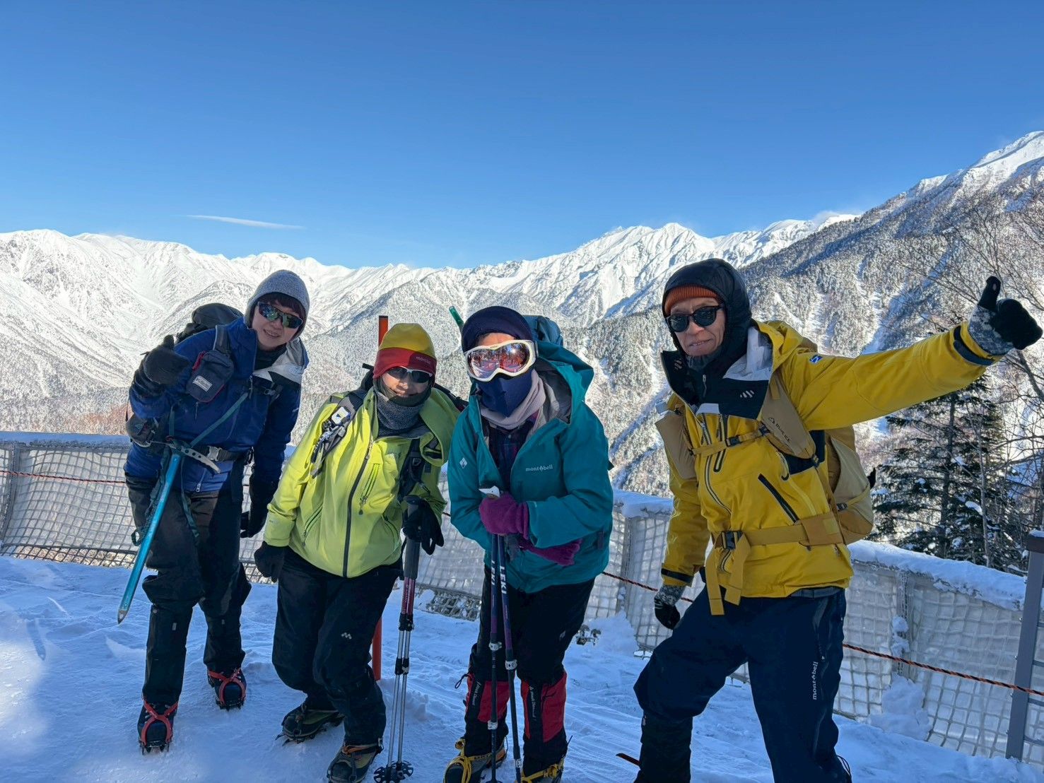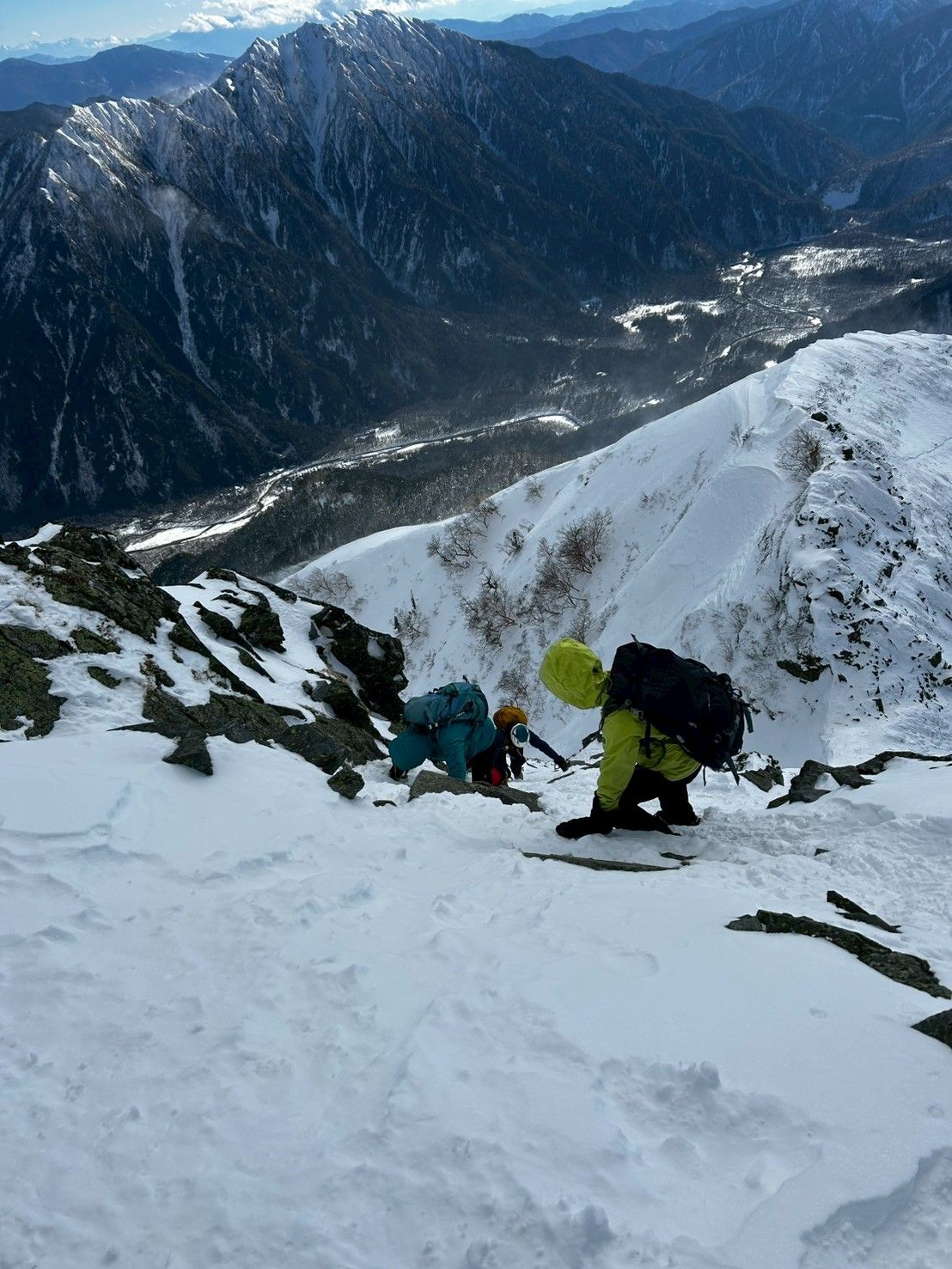 ピッケルが大活躍。足場も見辛く、恐る恐るのクライムダウン。降りたらみんな怖かった〜の連発でした😅