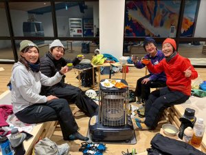 そんな時、大先輩のザックからまさかのガスとバーナーとコッフェルが!みんなビックリ😳この寒さの中、温かい飲み物がいただけたのは、本当に有難かった。感謝、感謝です🙏