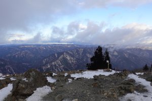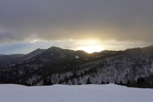 翌朝は吹雪に見舞われるかと思いきや、武奈ヶ岳山頂からこんな朝日を望むことができました。美しい朝の光景に見とれていたら強風で私の帽子が―ー、、驚く速さで師匠が飛んで行った帽子を救済して下さいました( ;∀;)
