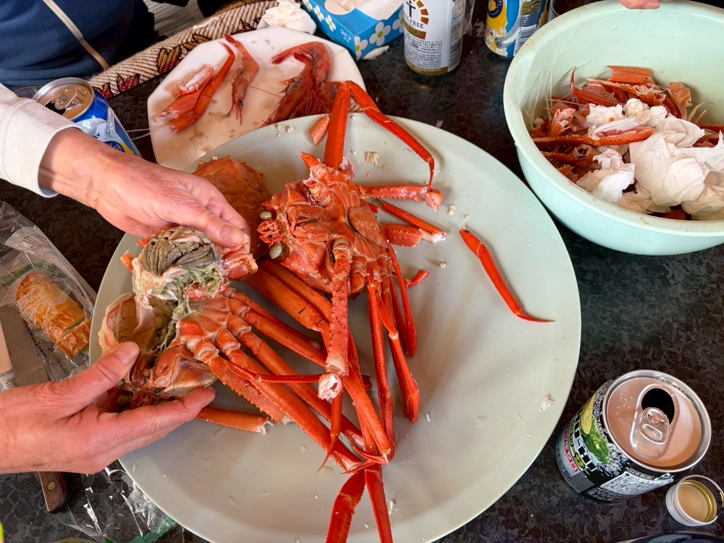 宿についたら、nabeharuさんが買ってくれたカニを肴に、宴会がスタートです。