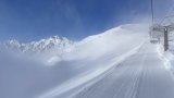八方池付近で雪面の温度は-9度くらいでしたが風が弱いので寒く感じませんでした。 その後のスキー下山は意外に良かった。 深雪ではないのでスピードは出るけどパウダーの感触は十分で気持ち良し。